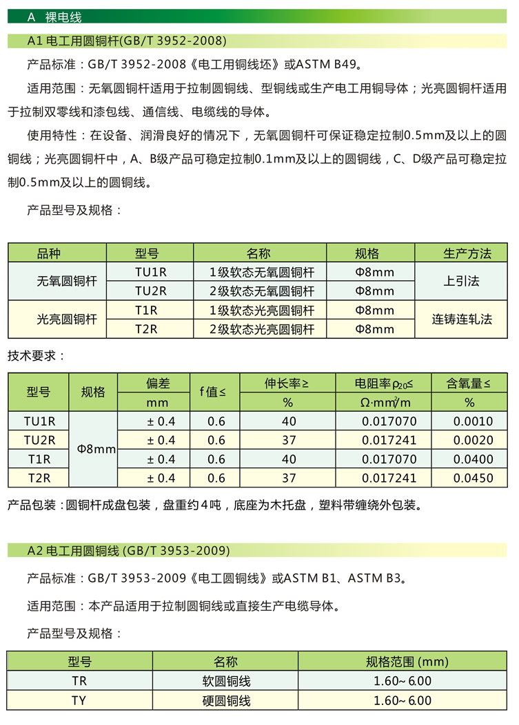 二、使用范圍  本產品適用于拉制圓銅線,型銅線和其它電工用銅導體的無氧圓銅桿和光亮圓銅桿。